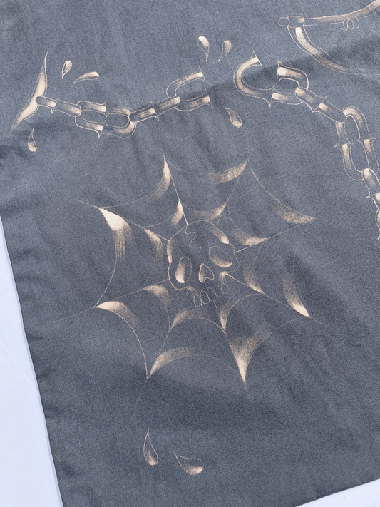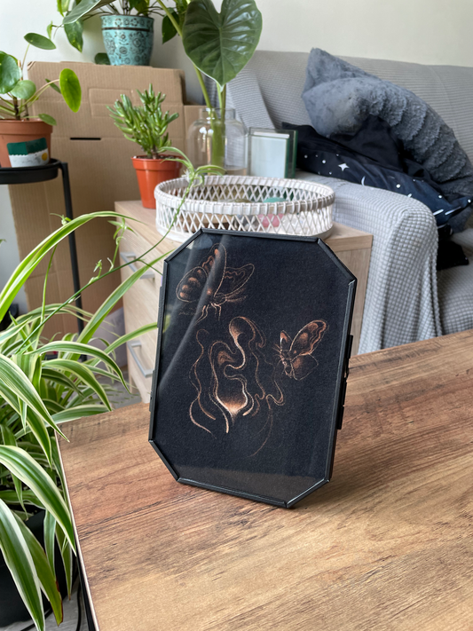 Hand painted bleach artwork in metal frame - 'Deathbeds'