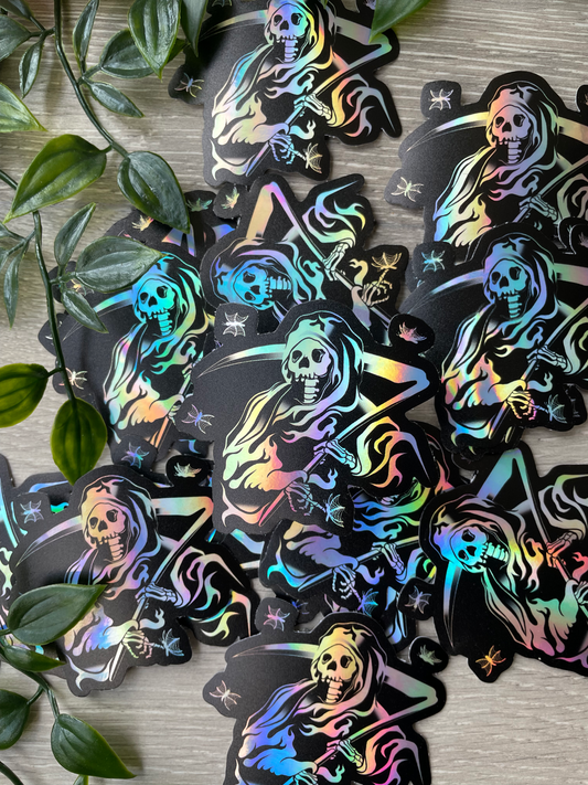 Spooky Grim Reaper die cut rainbow vinyl sticker